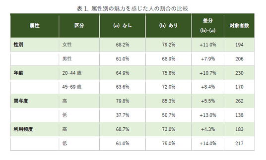 都市再開発での持続可能性を実現する1つの要因は、多様な人々が魅力を感じ、そこに訪れたくなる場づくりです。再開発を担う自治体や関連企業は、再開発の完成予定図(パース)でまちを描写し、その魅力を多くの人々に発信しています。しかし、パースの内容に関する議論では、建物や設備といった空間構成要素を中心に議論が進むことが少なくありません。そこで、本研究は、そこで過ごす人々の描写によるまちの魅力の違いを分析しました。ここで注目した要素はベビーカーです。子どもや子育て家族の存在はまちの活気をもたらし、かつファミリーレストランに代表されるように心理的な参入障壁を下げることが期待されます。ベビーカーの有無によるまちの魅力の違いをランダム化比較試験で検証した結果、ベビーカーの描写がある方が有意に高い評価を得ることが明らかになりました。この効果は、性別や年齢を問わず有効でした。この知見は、パースでの訴求だけでなく、まちの制度設計にも活用できます。ベビーカーが入りやすい場づくりをすることで、多様な人々にとってその都市の魅力が高まることが期待できます。本研究成果は、日本電気株式会社(NEC)と明治大学商学部加藤拓巳准教授の共同研究として、2026 International Conference on Management, Tourism and Technologiesで採択され、Business and Economics (Springer)に掲載されます。