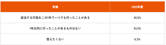 2.この1年間に「一つでも違反行為を行ったことがある」方は40.5%