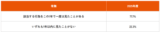 【表3-1】この1年間に該当する行為を見かけたことの有無