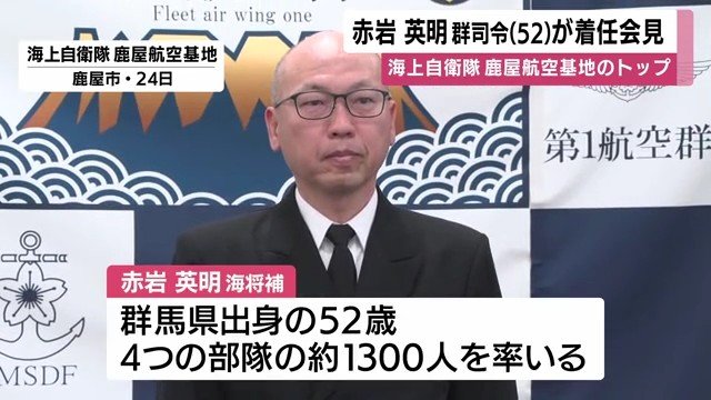 赤岩海将補は群馬県出身の52歳。鹿屋航空基地に所属する4つの部隊、約1300人を率いるトップとして指揮を執ることになる。