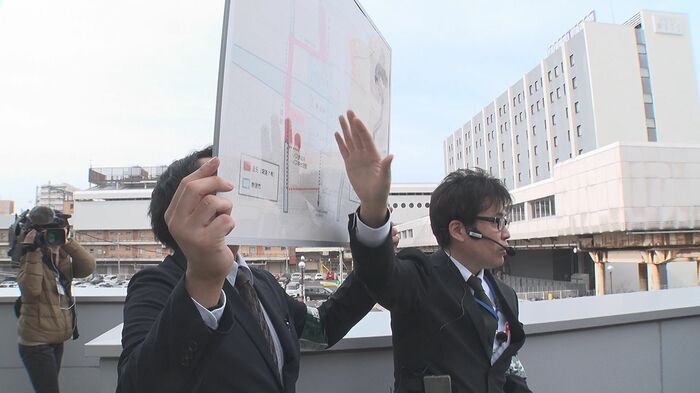 建設業や不動産業など17社26人が参加し、事業計画の説明を受けたほか、バスタの建設予定地などを見学し、イメージを膨らませていた。