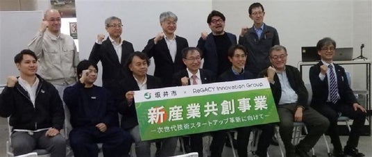 優れた技術力を持つ福井の地元企業と革新的なアイデアや研究開発力を持つ県外のスタートアップ企業や起業を志す研究者をマッチングさせることで新産業を生み出す福井県坂井市の「新産業共創事業」の初年度成果発表会が3月17日、同市春江町の拠点施設「SAKAI WEAVE(サカイ・ウイーブ)で行われた。この事業の坂井市のパートナー企業「ReGACY Innovation Group(レガシー・イノベーション・グループ=本社・東京、以下レガシー社)」が、全国から誘致した県外3社2大学の5事業者が、昨年夏以来の約7カ月に渡って取り組んだ実証実験や試作、構想などを報告した。