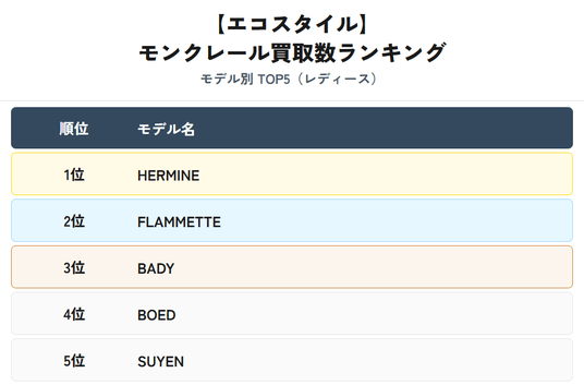 人気モデルランキング TOP5(レディース)