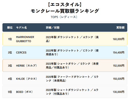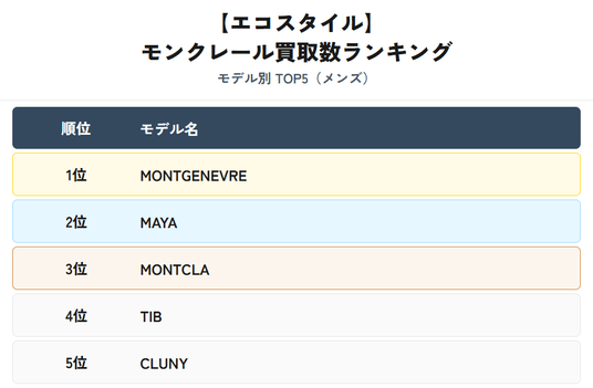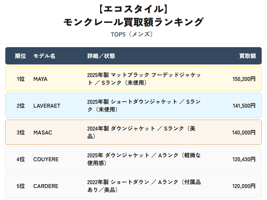 エコスタイル全店:モンクレール買取動向レポート