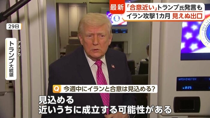 アメリカ・トランプ大統領は29日、記者団に対してイランとの「合意は近い」との見通しを示した。