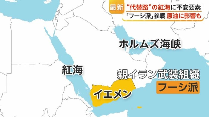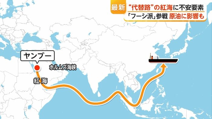 こうした中、ホルムズ海峡封鎖の代替ルートとして紅海を経由した最初の原油タンカーが日本に到着した。しかし、親イラン武装組織フーシ派による新たな不安が広がっている。