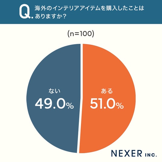 ■51.0%が、海外のインテリアアイテムを「購入したことがある」と回答