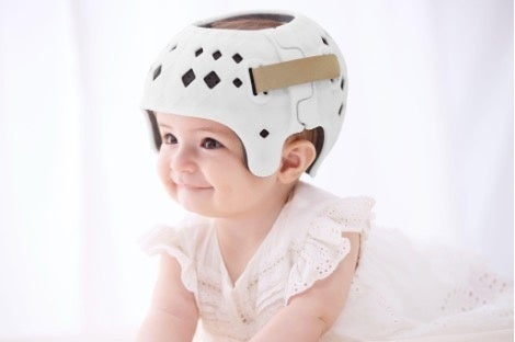 赤ちゃんの頭のゆがみは、向き癖など外部からの圧力が主な原因ですが、稀に病的変形があり、ヘルメット治療の対象となるのは、外部からの圧力による位置的頭蓋変形になります。赤ちゃんの頭囲が急成長する生後3か月~生後7か月頃までの間に、治療用のヘルメットを装着することで頭蓋変形を治療することが可能になっています。