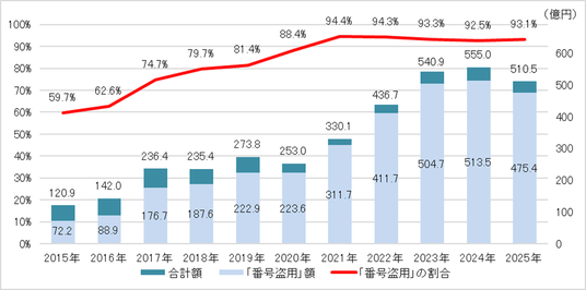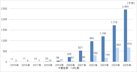 出典:フィッシング対策協議会「フィッシングレポート 2025」の数値をもとにJCCAにて加工