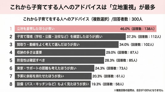 【結果6】これから子育てする人へのアドバイスは「立地重視」が最多