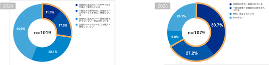 生成AIの導入状況■「社内で生成AIは導入されていますか?」に対する回答結果( 左図:2024、右図:2025)
