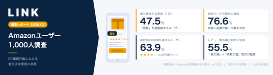 LINK株式会社(本社:東京都新宿区、代表:南雲 宏樹)は、Amazonでの商品購入に関する消費者意識調査を実施しました。本調査では、Amazon利用者が商品購入時にどのような要素を重視しているのか、レビューや星評価、広告表示に対する認識などについて分析しています。