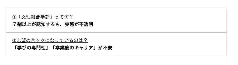 ■ トピックス1.【文理融合学部って何?】7割以上が認知するも、実態が不明