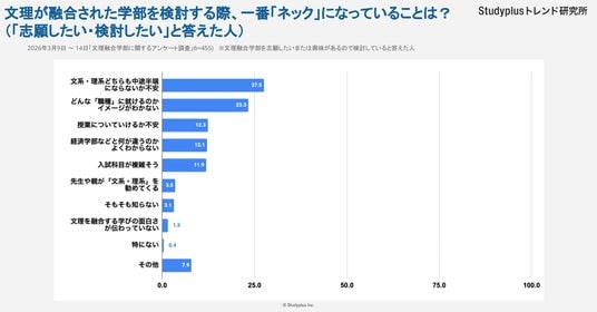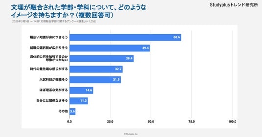 スタディプラス株式会社(本社:東京都千代田区、代表取締役:廣瀬高志、以下スタディプラス)のStudyplusトレンド研究所は、2026年3月9日(月)から3月13日(金)にかけて学習管理アプリ「Studyplus」上で全国の高校1,2生を対象に「文理融合学部に関するアンケート」を実施、1,053名から回答を得ましたのでご報告いたします。