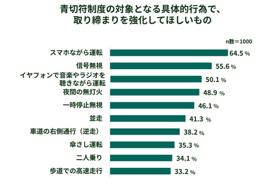 取り締まりを強化してほしい違反の第1位は「スマホながら運転」。