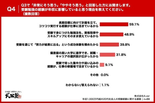 Q4. Q3で「非常にそう思う」「ややそう思う」と回答した方にお聞きします。受験勉強の経験が年収に影響していると思う理由を教えてください。(複数回答)