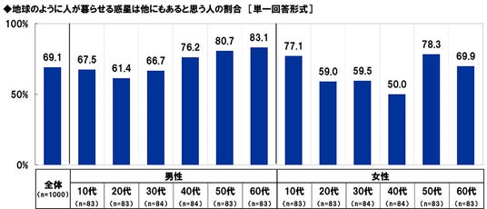 - 「地球のように人が暮らせる惑星は他にもあると思う」69%