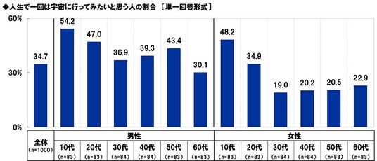 - 「いつか宇宙に行ってみたい」10代男性では49%