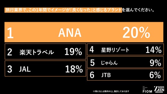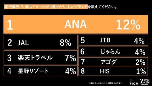 1位『ANA』(イメージが良くなった:20% / 最も爆上がりした:12%)