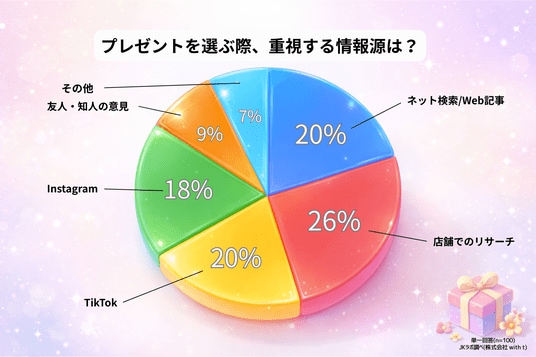 注目すべきは情報源です。TikTok(20件)やInstagram(18件)を抑え、「店頭でのリサーチ(26件)」が第1位となりました。 「親のAmazonカートを覗く」「悩みを事前に聞き出す」といった徹底した個別リサーチに加え、最終的には自分の目で品質を確かめて選ぶ、Z世代特有の「失敗したくない」堅実な購買行動が浮き彫りになりました。