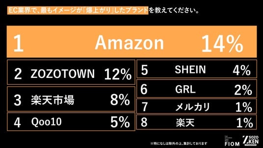 1位『ZOZOTOWN』(イメージが良くなった:35% / 最も爆上がりした:12%)