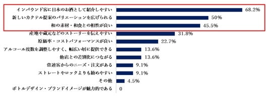 ■提供理由は「インバウンド向け」が最多。カクテル展開や和食との相性も評価