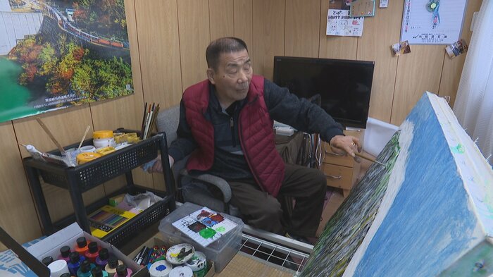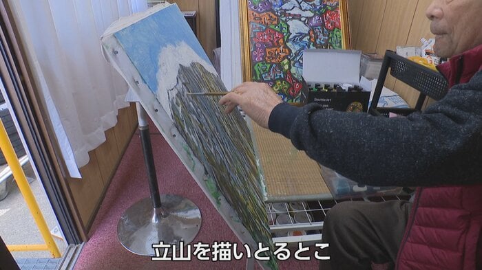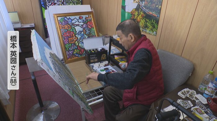 黒部市の鉄工所の一角に、小さなプレハブがある。1人でキャンバスと向き合う橋本英圀さん(88)の姿がそこにある。