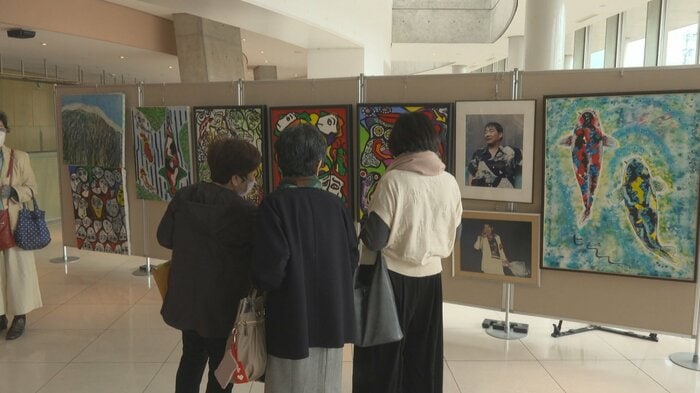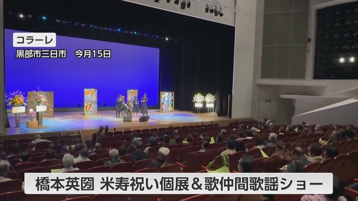 先日開かれた米寿の祝いの会には、気の合う仲間50人が集まった。大カラオケパーティーで、橋本さんは家族とともに大好きな歌を歌い、会場を盛り上げた。会場の入口には、初期の作品から左手で描いた最近の作品まで約20点が展示され、訪れた人たちは口々に感想を述べた。