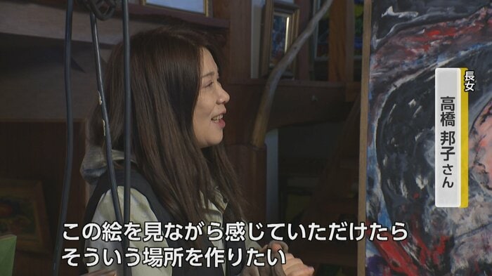 「このままで誰にも見てもらわないと。このまま置いとくよりも、みなさんの集まる場所に展示してお茶やお酒を飲みながらこの絵を見ながら感じていただけたら、そういう場所を作りたい」