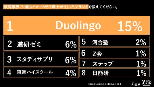 1位『Duolingo』(イメージが良くなった:34% / 最も爆上がりした:15%)