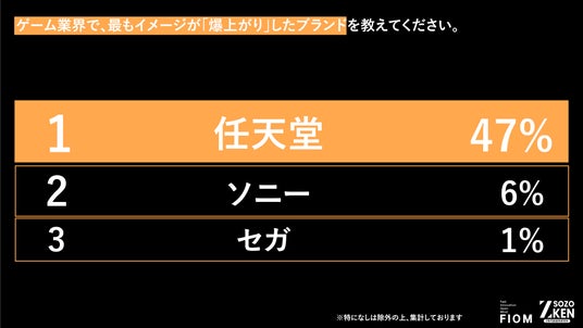 1位『任天堂』(イメージが良くなった:55% / 最も爆上がりした:47%)