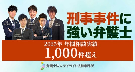 弁護士法人デイライト法律事務所は、2025年1月1日から2025年12月31日までの1年間において、刑事事件問題に関する法律相談件数が1,000件を超えたことを発表しました。