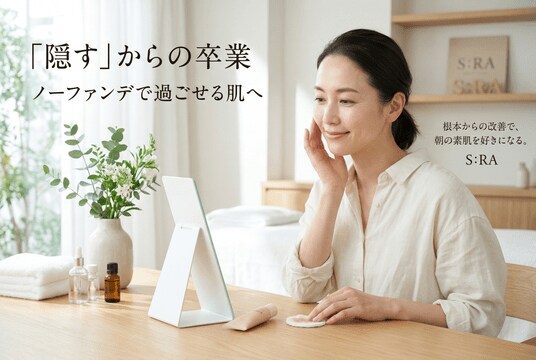 ファンデーションは本来、肌をより美しく見せるためのもの。トラブルを「隠す」ためのものではありません。しかし、毛穴の開きやたるみ、くすみをカバーするうちに、気づけばベースメイクが厚塗りになってしまっている方は少なくないはずです。S:RAが提供したいのは、一時的な美しさではなく、朝に鏡を見るのが楽しみになるような「肌に振り回されない人生」です。