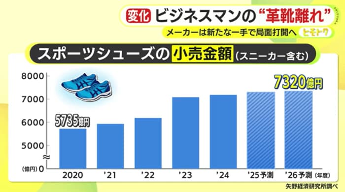 一方、低迷が続く革靴とは裏腹に好調を維持しているのがスニーカーだ。