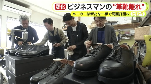 ビジネスマンの”足元”に変化の波が押し寄せている。コロナ禍やオフィスカジュアルの浸透で紳士用革靴の市場が縮小する一方、スニーカーの需要は拡大。最近では軽装勤務を推奨する自治体も出ている。こうした中、試練の時を迎えた革靴メーカーは新たな取り組みを進めるとともに、質の高い靴の魅力を再発見してもらうことで“革靴文化”の継承を目指している。