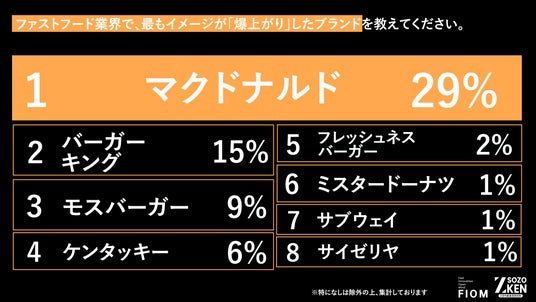 1位『マクドナルド』(イメージが良くなった:37% / 最も爆上がりした:29%)