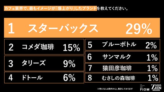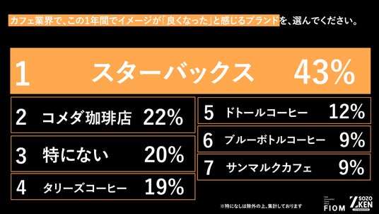 1位『スターバックス』(イメージが良くなった:43% / 最も爆上がりした:29%)