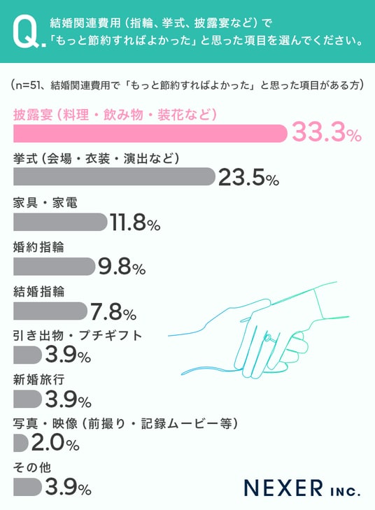 ■節約すればよかった項目、1位は「披露宴」で33.3%