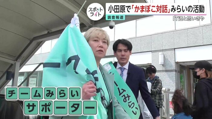神奈川県小田原市。チームみらいのサポーターたちが、日曜日の昼間、街頭で活動報告のチラシを2時間にわたって配っていた。