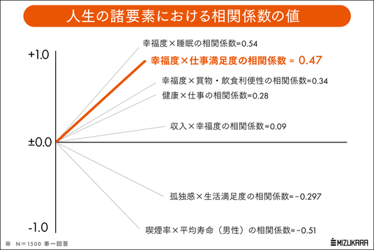 仕事満足度と幸福度の相関係数は【0.47】で高い相関