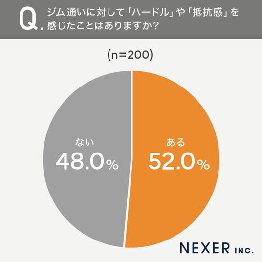 続いて、ジム通いに対して「ハードル」や「抵抗感」を感じたことがあるかを聞いてみました。