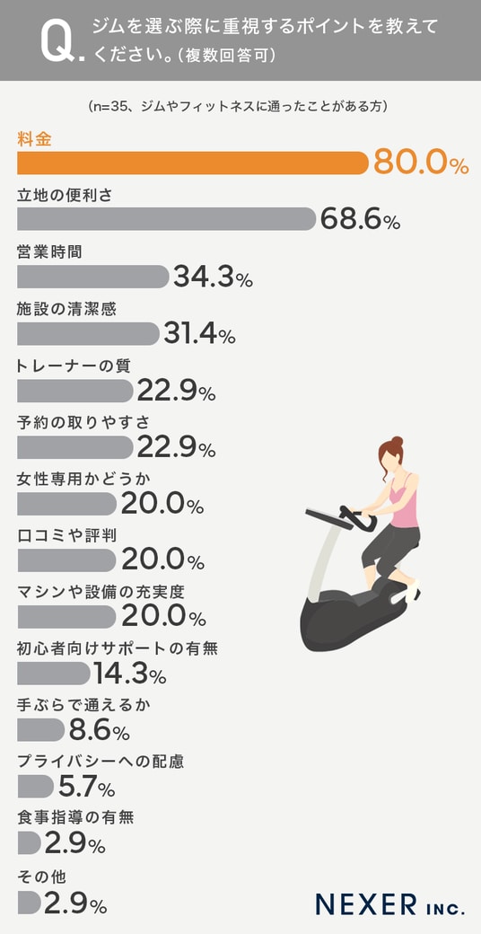 ■80.0%が、ジムを選ぶ際に「料金」を重視すると回答