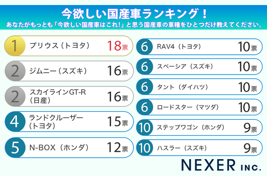 株式会社NEXER・今欲しい国産車に関する調査