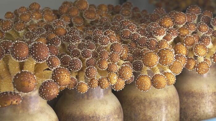 全国で唯一、廣松さんの所でしか生産されていない『ヌメリスギタケ』。温度や湿度を最適の状態に調整した施設でも大量に生産することが難しいことから『幻のキノコ』と呼ばれている。