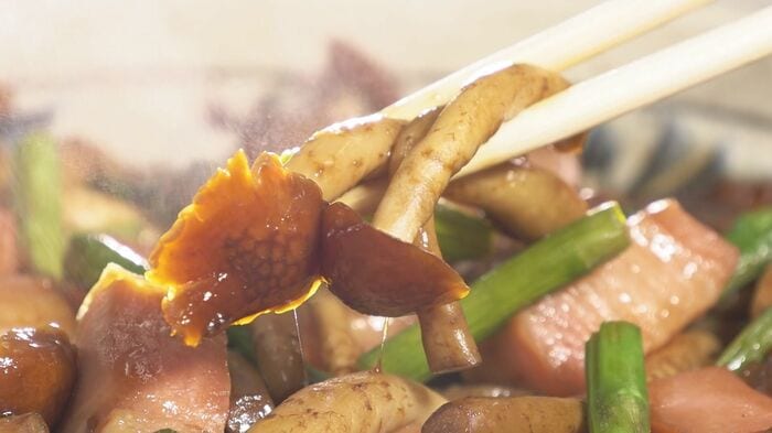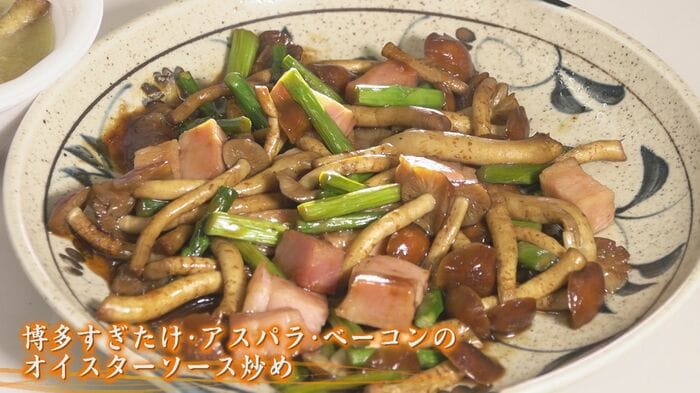 気になるのは、その味だ。廣松さんに美味しい食べ方を聞くと、お勧めは、「博多すぎたけとアスパラ、ベーコンのオイスターソース炒め」。