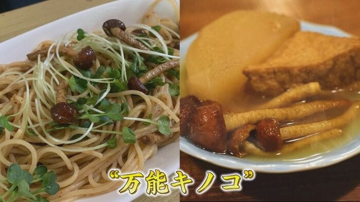 廣松さんは「二刀流です」と笑顔で胸を張り、『博多すぎたけ』は、炊き込みご飯や味噌汁など、「どんな料理にも合う“万能キノコ”」だと胸を張る。