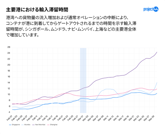 - インド、シンガポール、中国で滞留時間の増加が確認され、安定化の兆しがない中、地域港湾全体で混雑が深刻化。