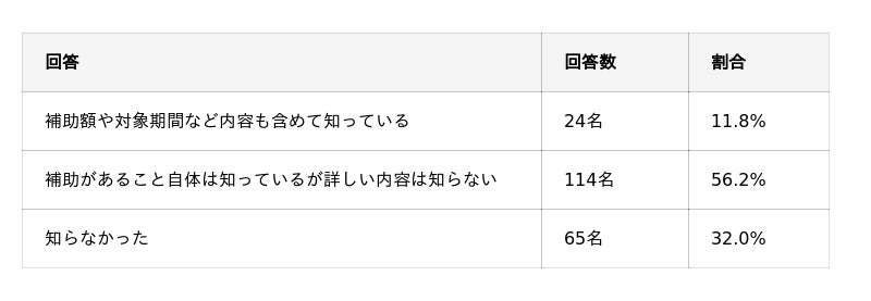 また、現在の補助が2026年3月使用分で終了予定(4月以降は未定)であることについても、「全く知らなかった」が49.3%と約半数にのぼりました。終了時期まで具体的に把握していたのは10.3%にとどまっています。
