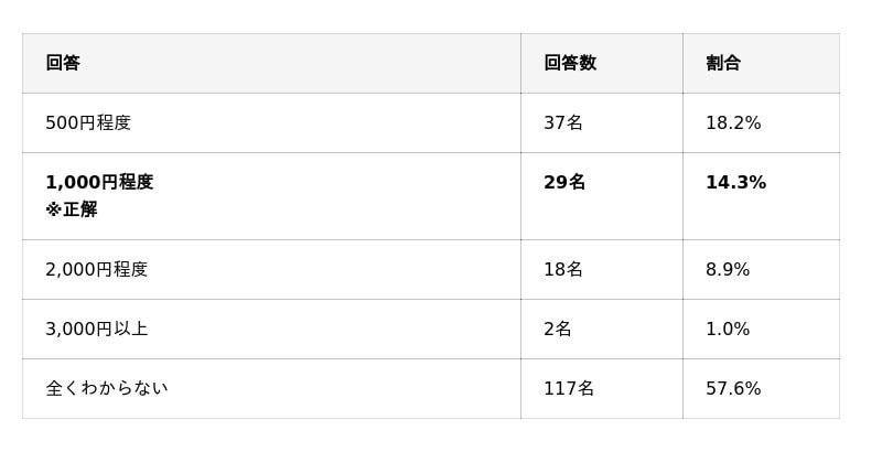 では、「知っている」と答えた人は本当に補助の内容を理解できているのでしょうか。これを検証するため、具体的な補助額についての設問を設けました。
