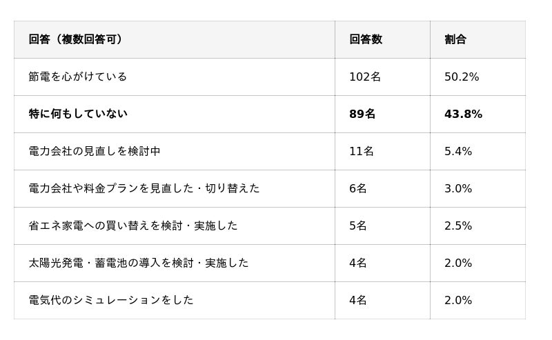 補助終了後の電気代上昇に備えて、何か対策をしているか